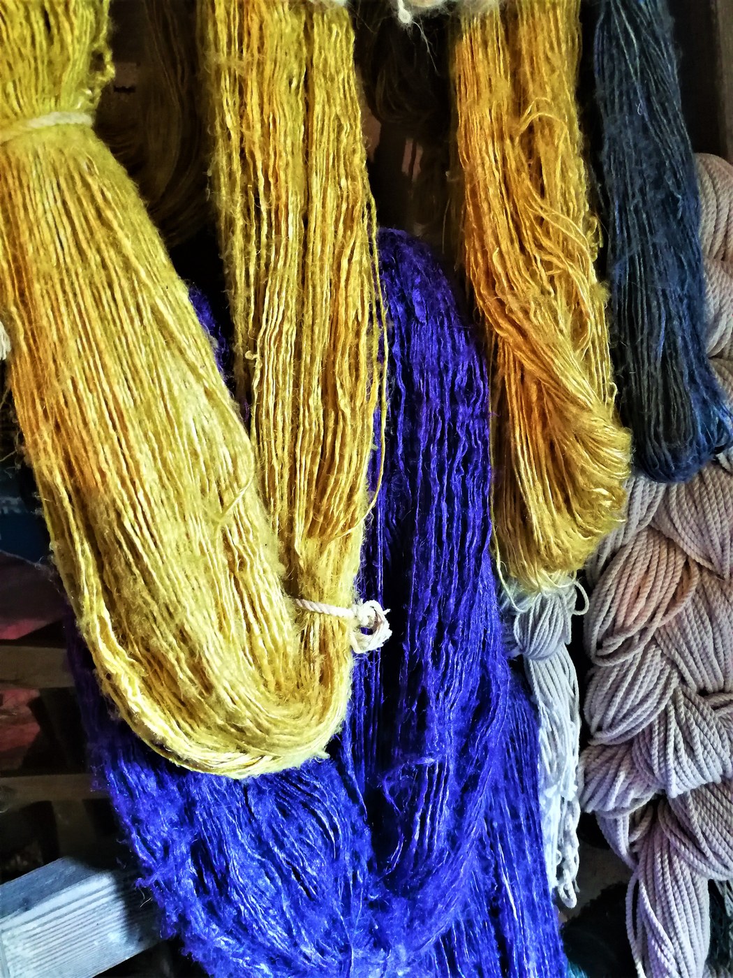 Mani abili, savoir-faire e ottimo gusto per disegni e motivi sono gli strumenti con i quali Marie, servendosi unicamente di vecchi telai manuali (donati da aziende tessili che decidono di modernizzarsi: alcuni hanno addirittura cent’anni), realizza sciarpe, stole, tappeti, cuscini…