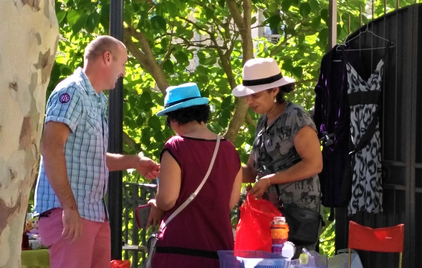 Per chi è da un lato e dall’altro della mercanzia, parlare degli oggetti esposti è sempre una scusa per fare quattro chiacchiere; anche la lingua non è mai un problema: in qualche maniera ci si capisce.