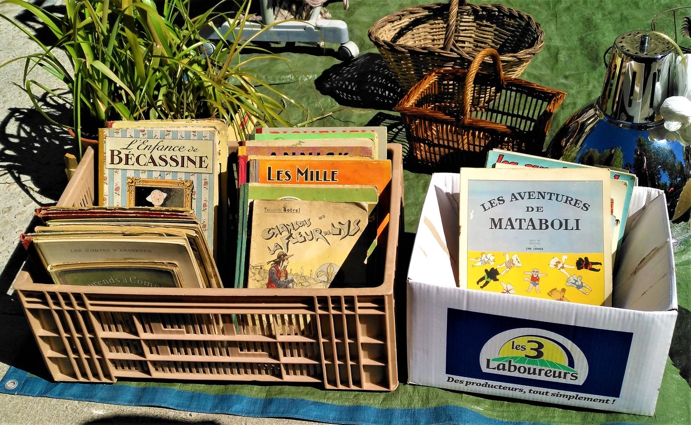 Lo dice la parola: vide-grenier, svuota-soffitta. Tutto rigorosamente usato. Quando vicino a te si organizza un vide-grenier, affitti una piazzola per pochi euro, porti le cose che non usi più e provi a venderle. Così riesci a fare un po’ di spazio in casa liberandoti di quel che a te non serve e che invece può servire a qualcun altro. Ma è anche un modo per passare una giornata diversa di tanto in tanto. Io partecipo, un paio di volte l’anno, anche perché mi piace stare in mezzo alle persone