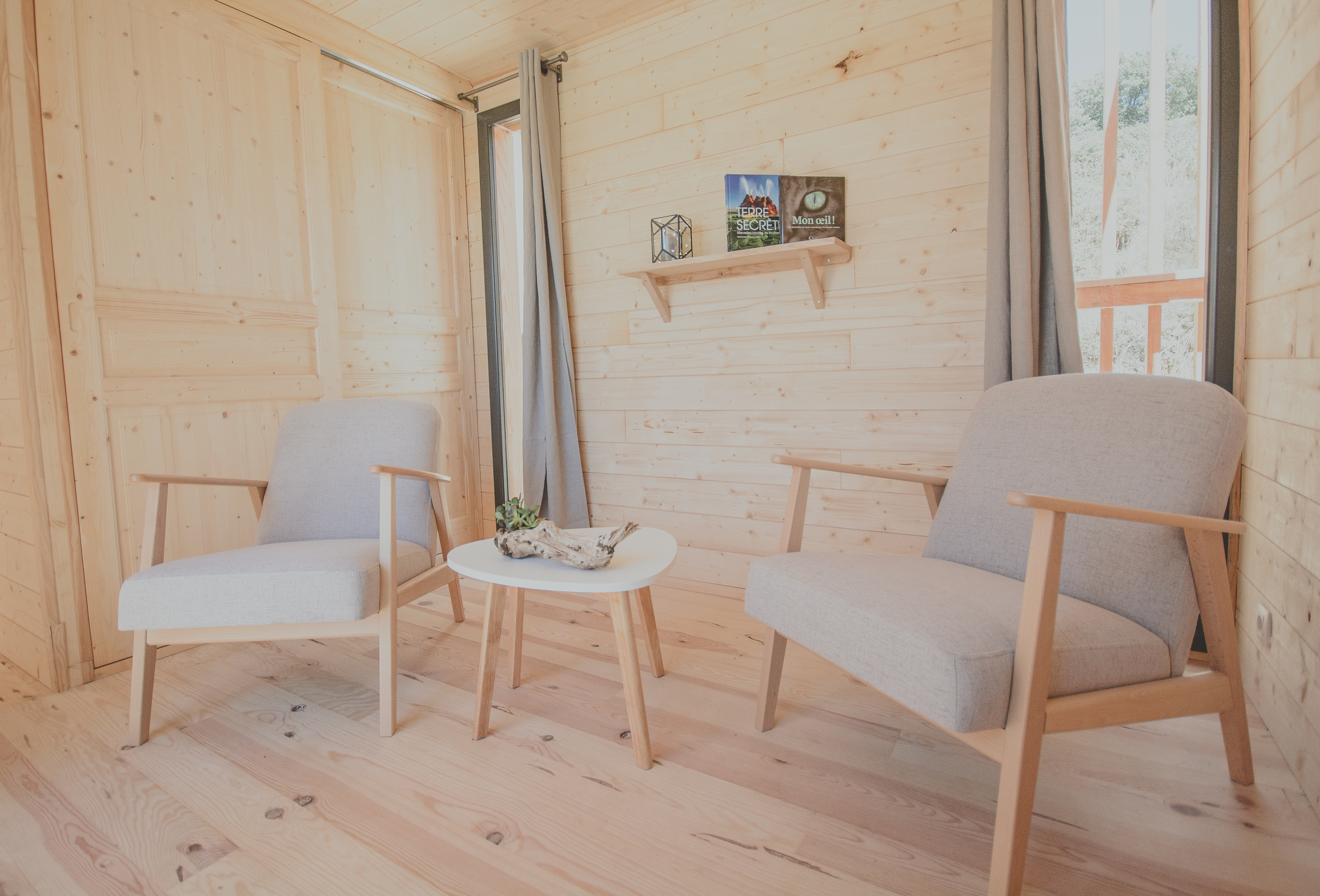 All'interno della palafitta - L'angolo giorno © Cabanes Nature & SPA