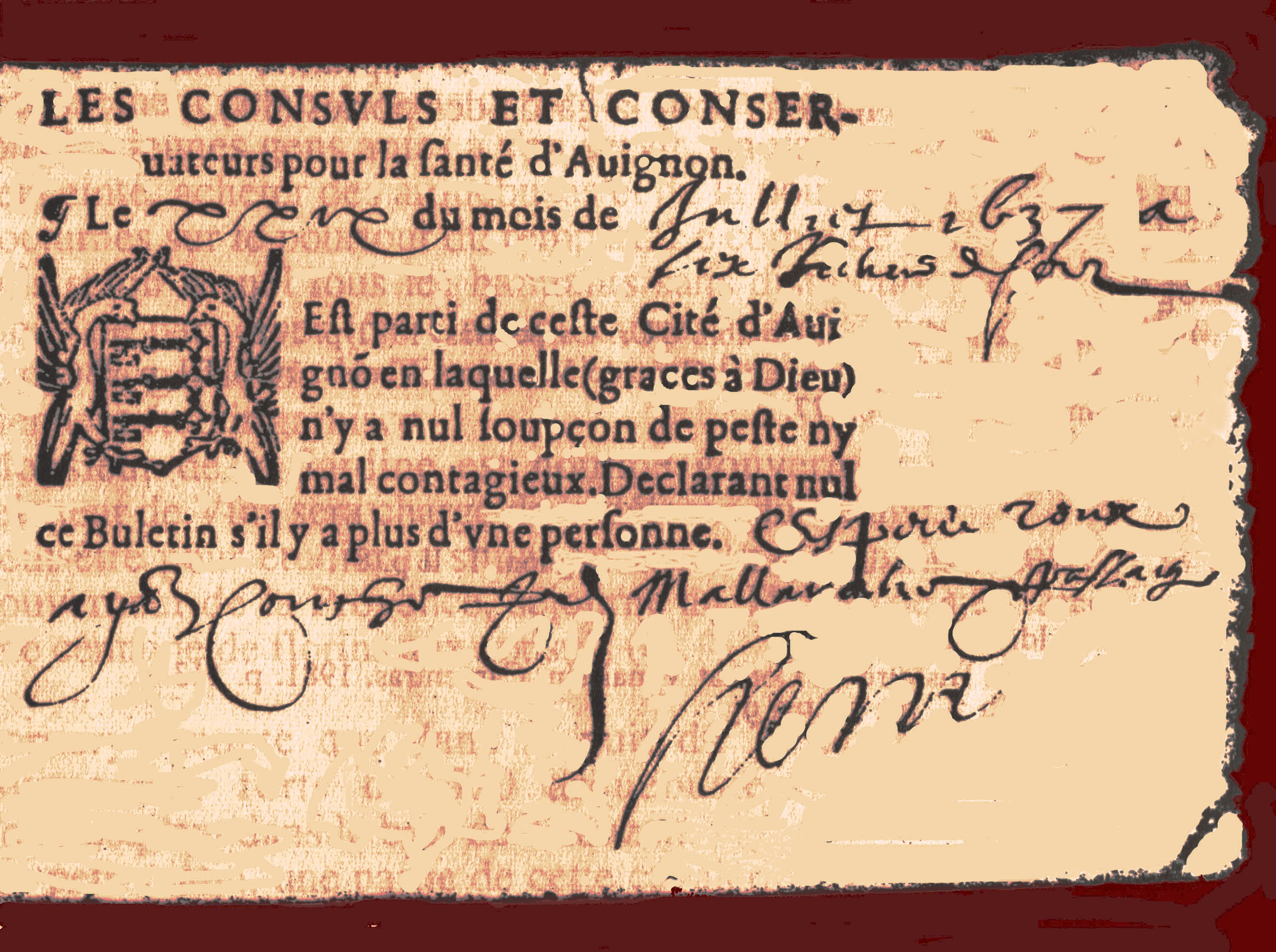 Antico bollettino sulla salute pubblica ad Avignone - Non si registra la presenza della peste