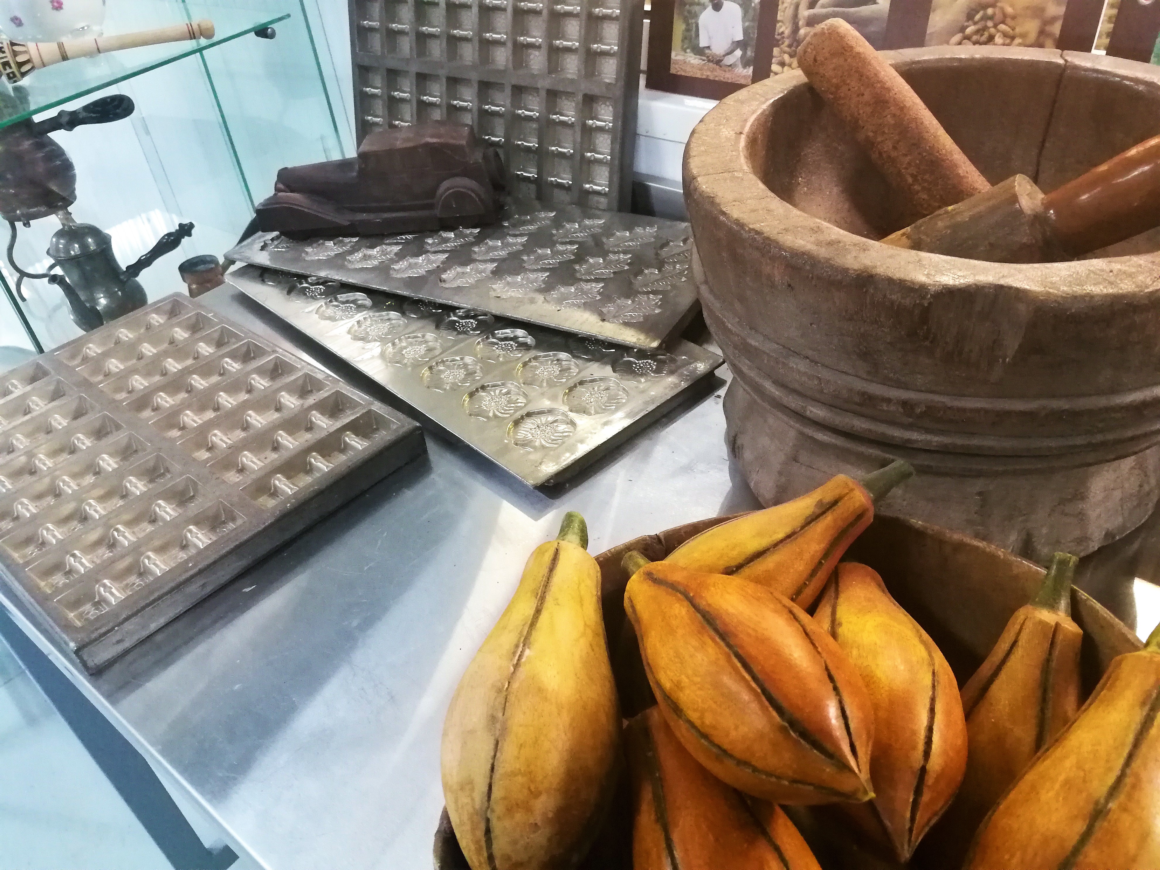 Chocolaterie Castelain, i frutti del cacao e le forme per bombon e ganches