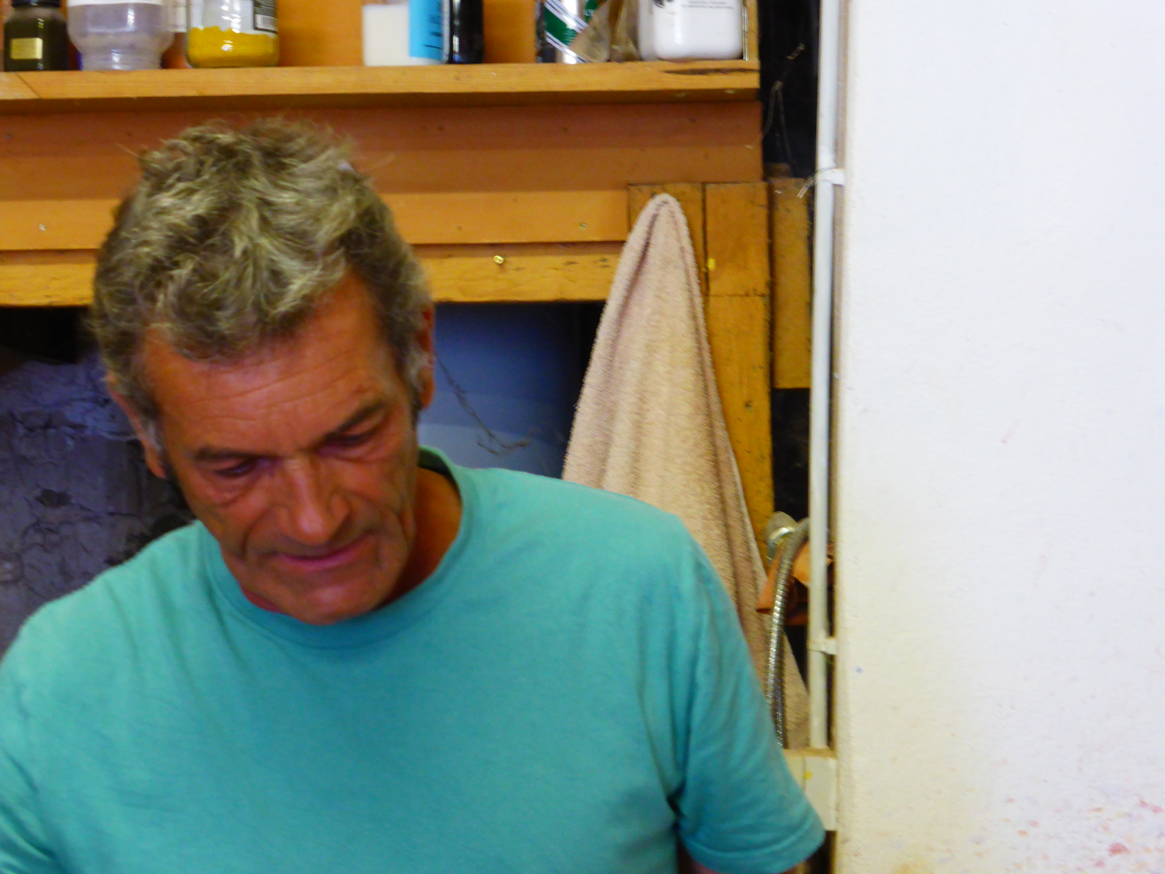 Christian Frisetti nel suo laboratorio artigianale