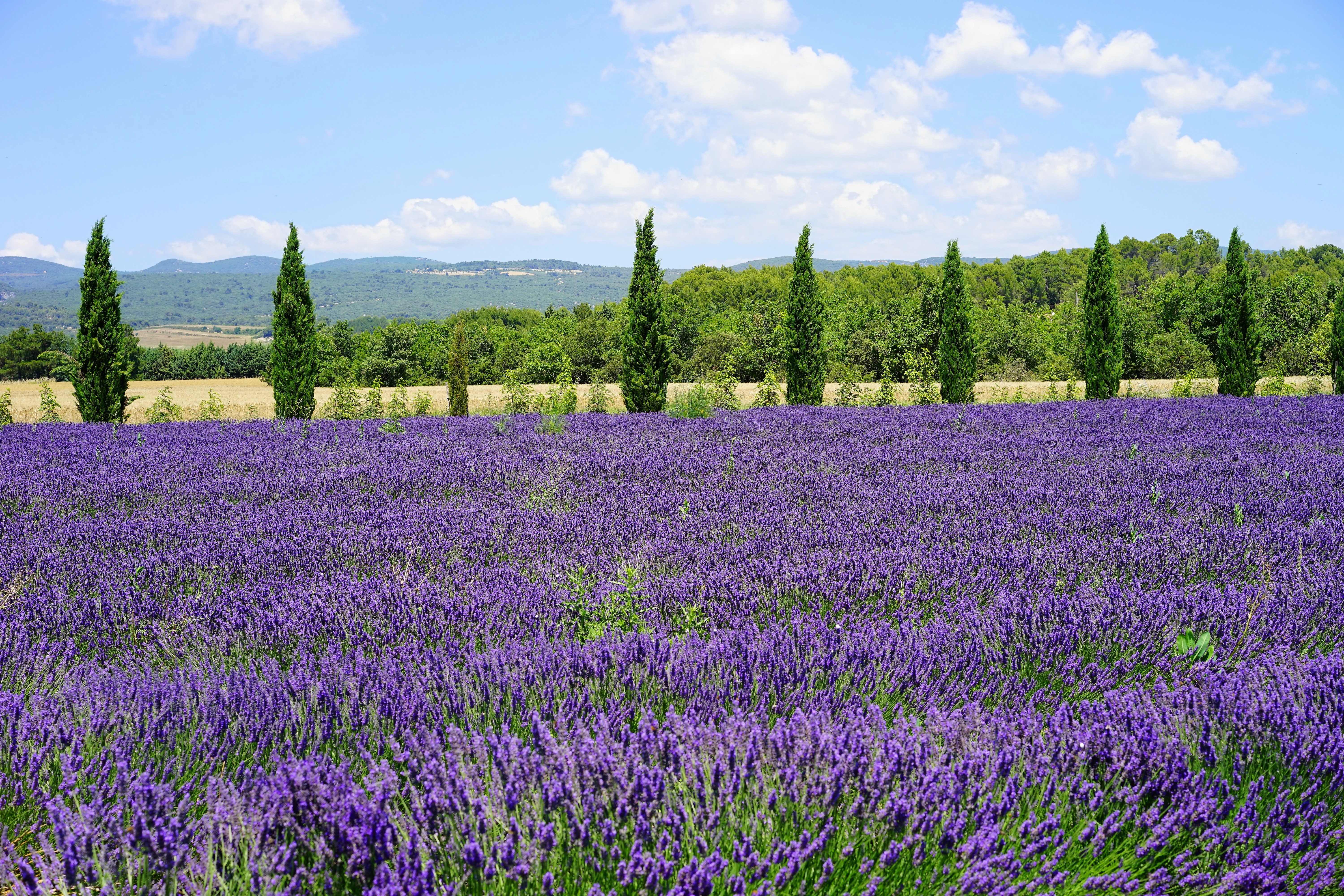 Cipressi sul confine del campo di lavanda