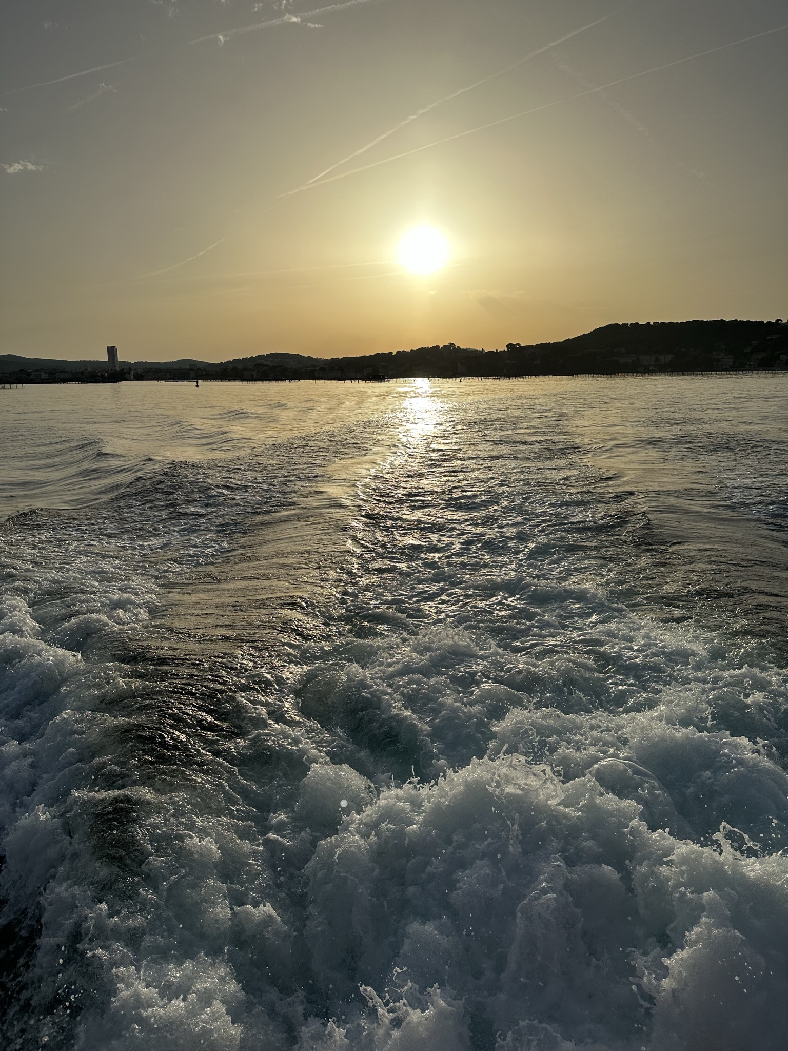 Croisiere vigneronne, scia della barca al tramonto © Tourisme Terre de Provence en Méditerranée