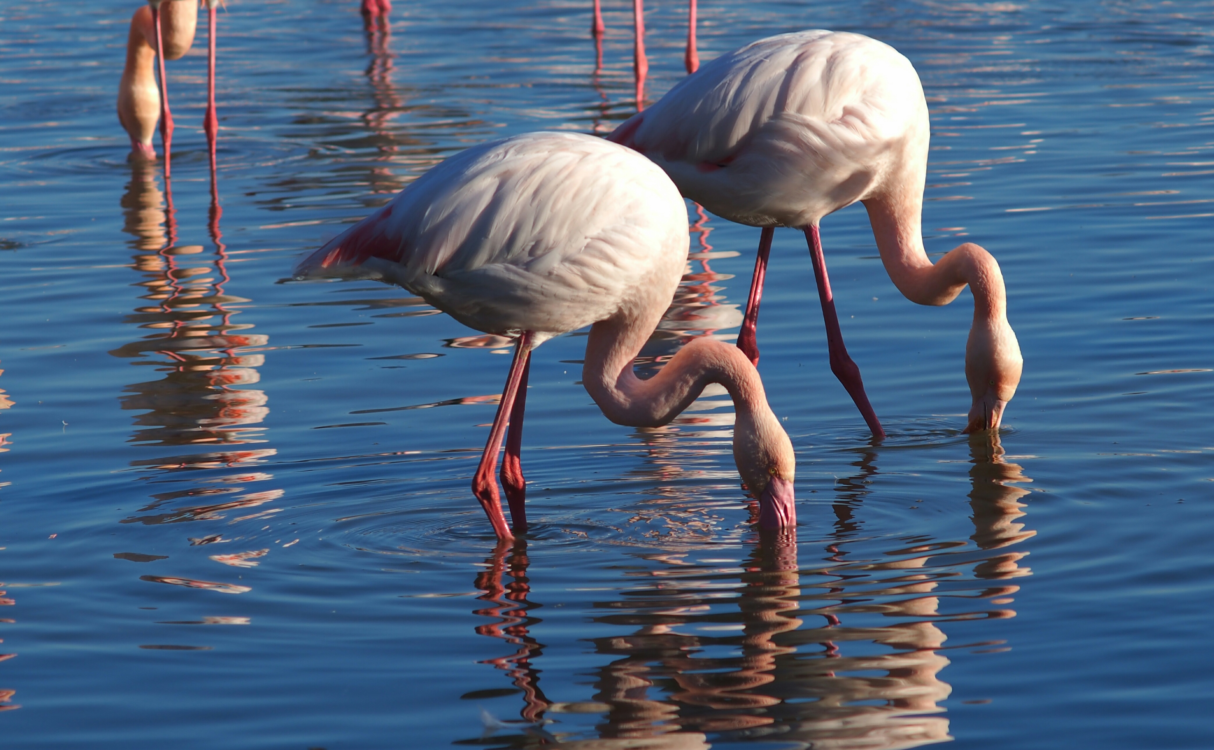 Fenicotteri rosa in cerca di cibo