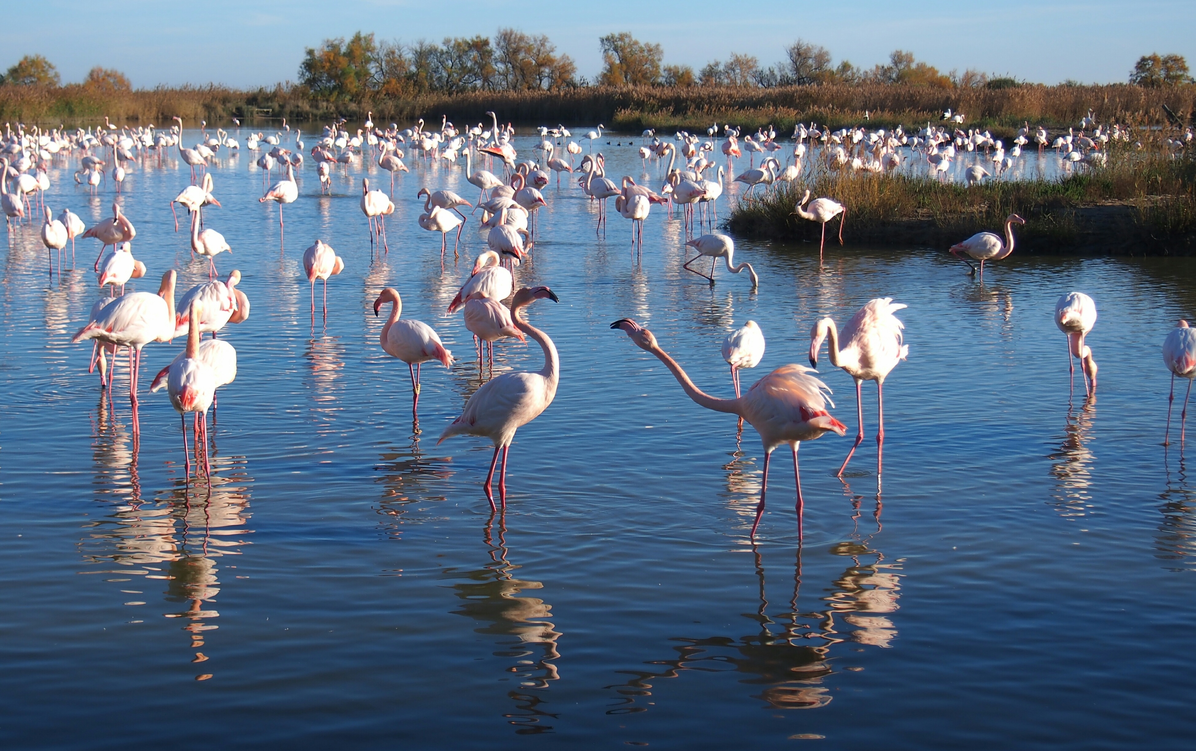 Fenicotteri rosa nello stagno