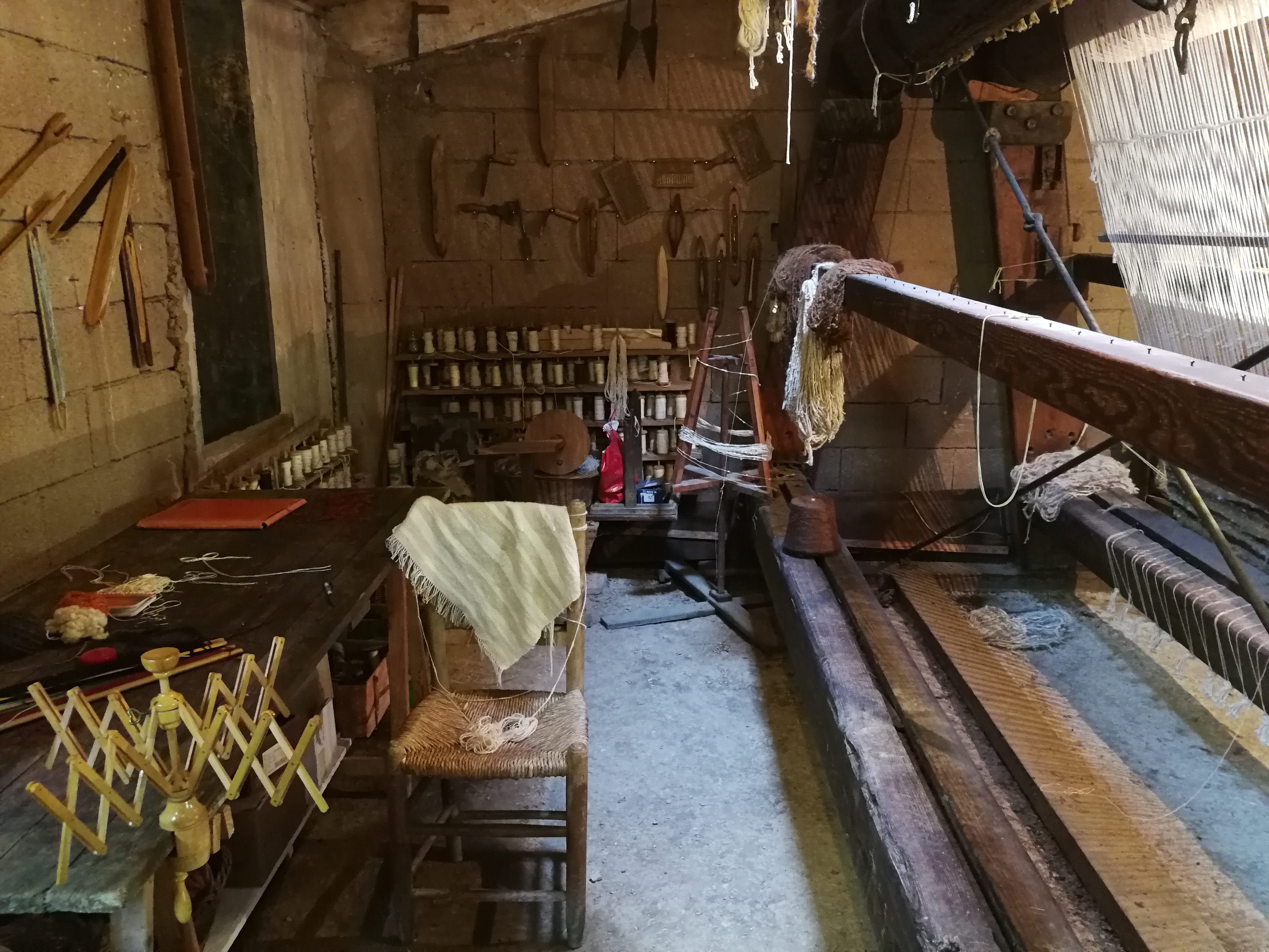 Le Barroux, l'atélier di tessitura, telaio e colori