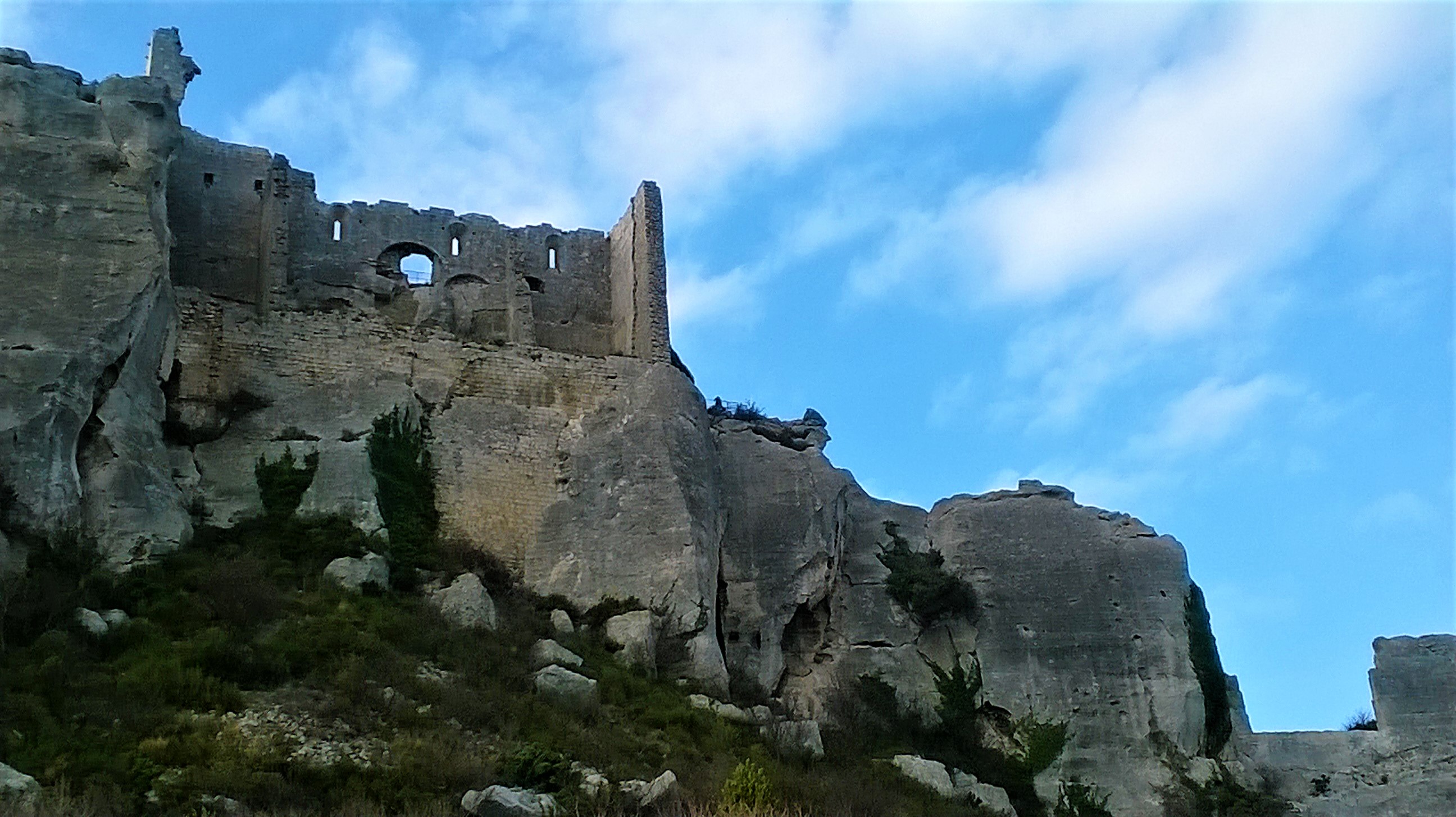 Le rovine del castello di Les Baux a picco sulla roccia