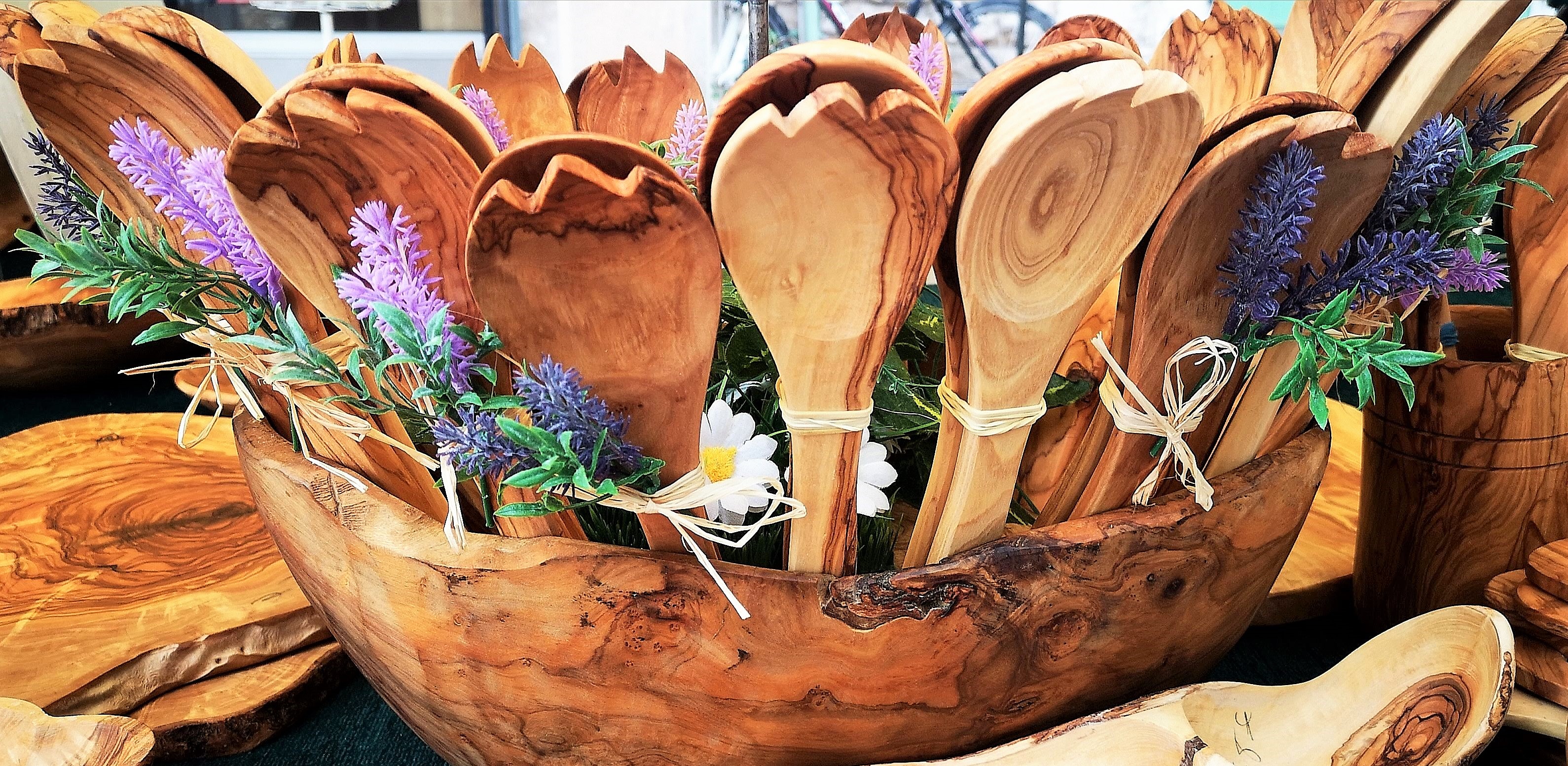 Legno di ulivo, posate da insalata