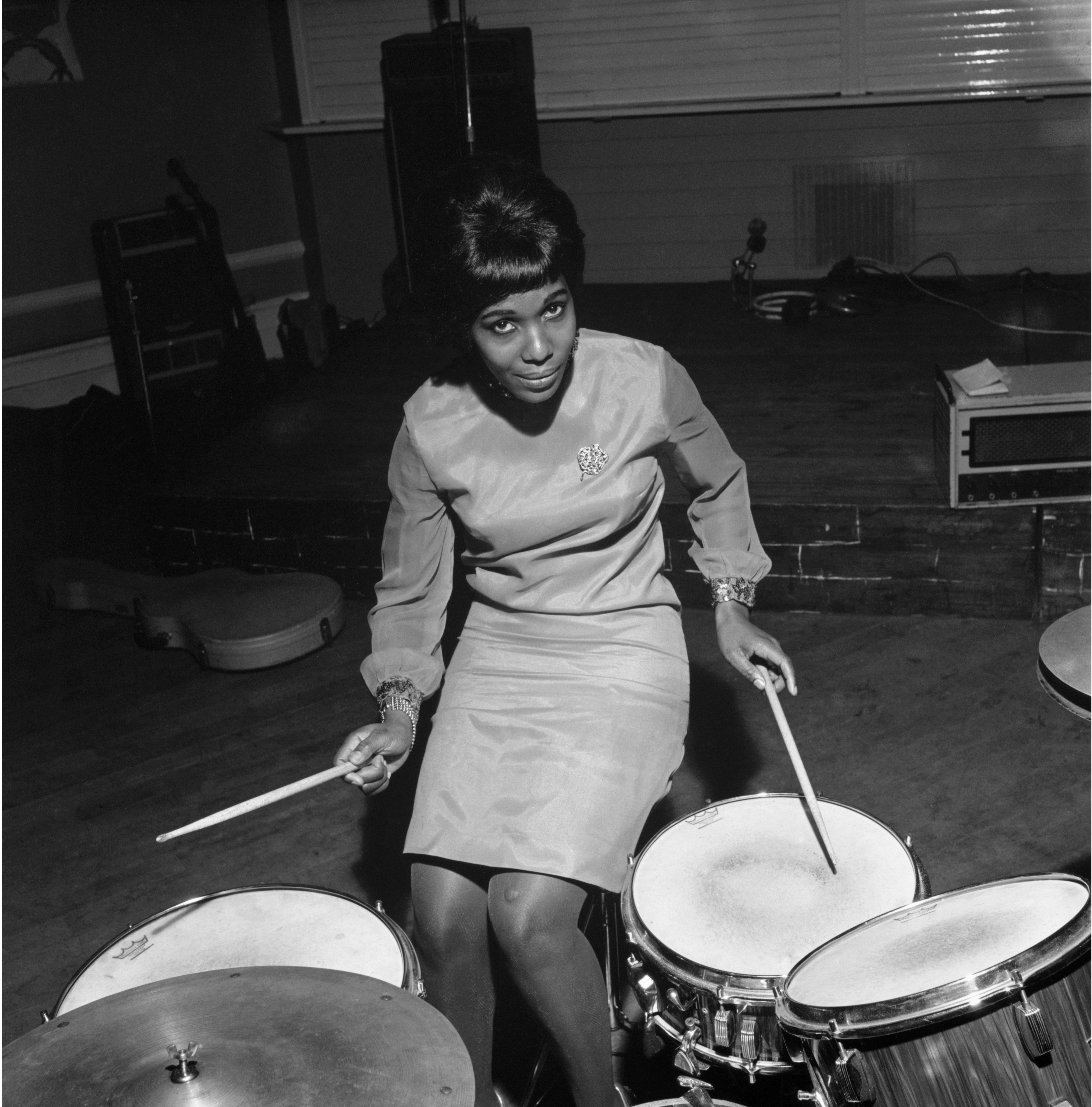 Luma Arles, Constance Mulondo, modèle pour Drum, au London University Weekend avec le groupe The Millionaires, Londres, 1967