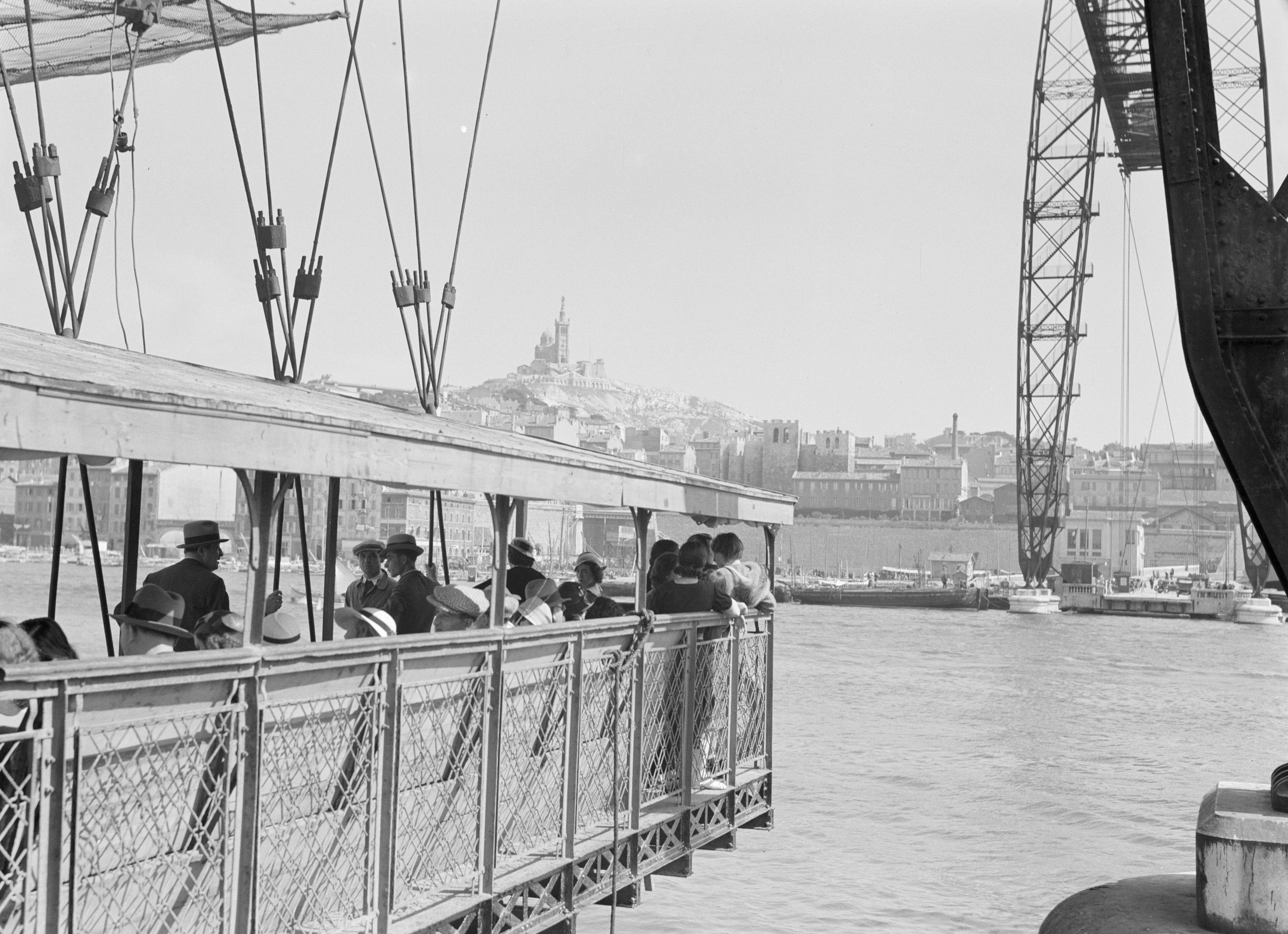 Marsiglia, passeggeri sulla navicella del ponte trasportatore