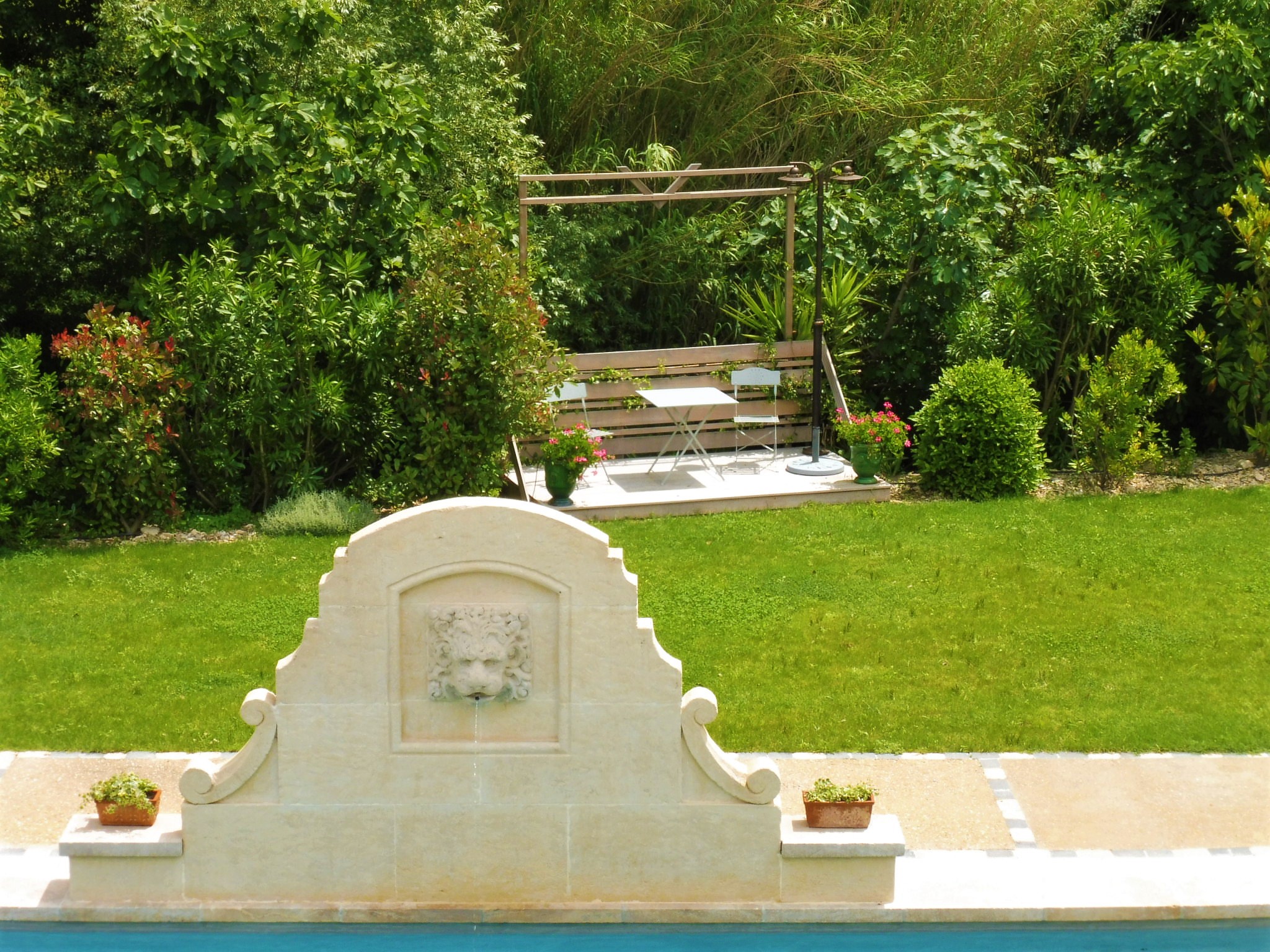 Maussane-les-Alpilles, Bastide des Cyprès, esterno, decoro della piscina.JPG