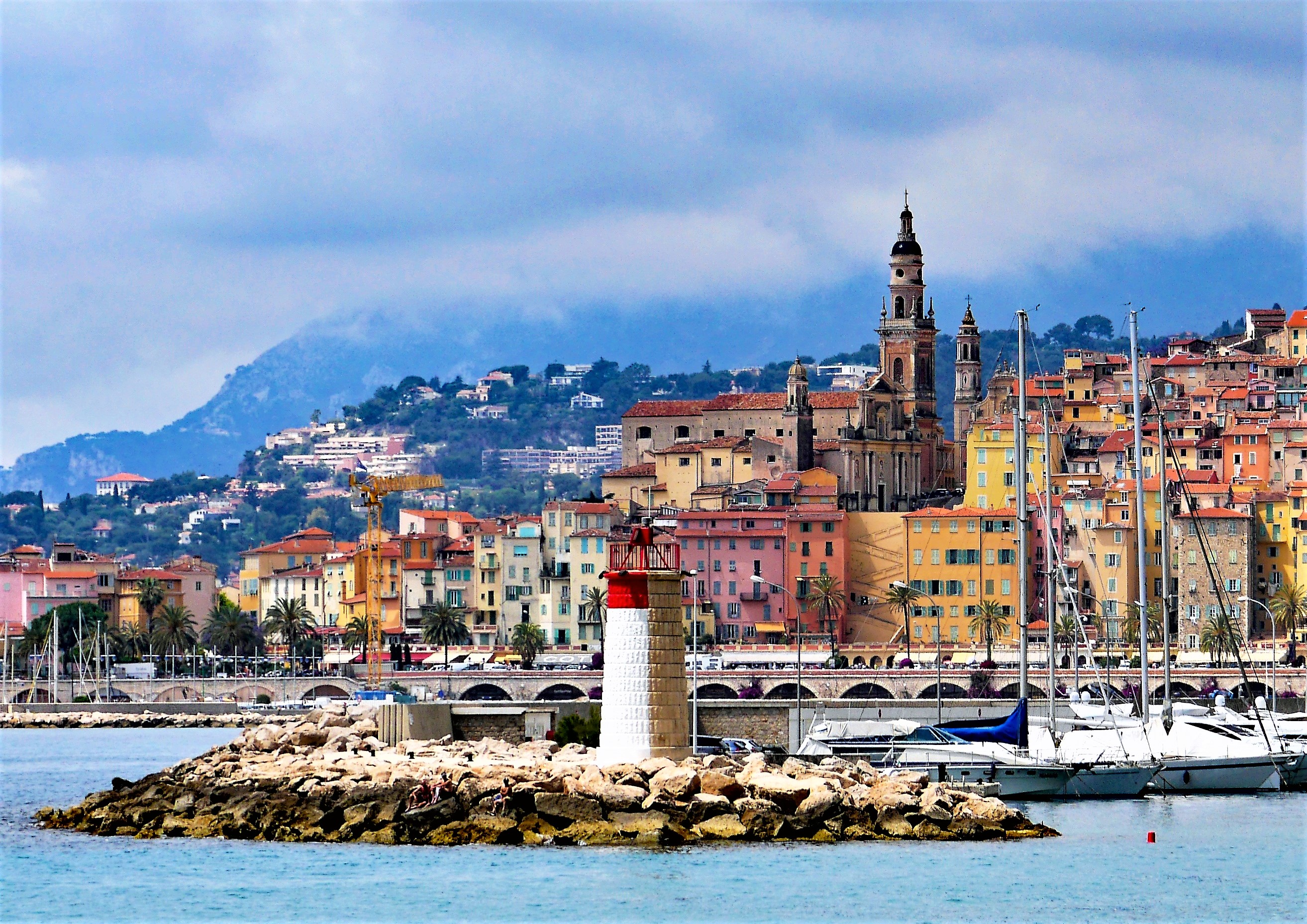 Mentone - La basilica di San Michele Arcangelo vista dal mare