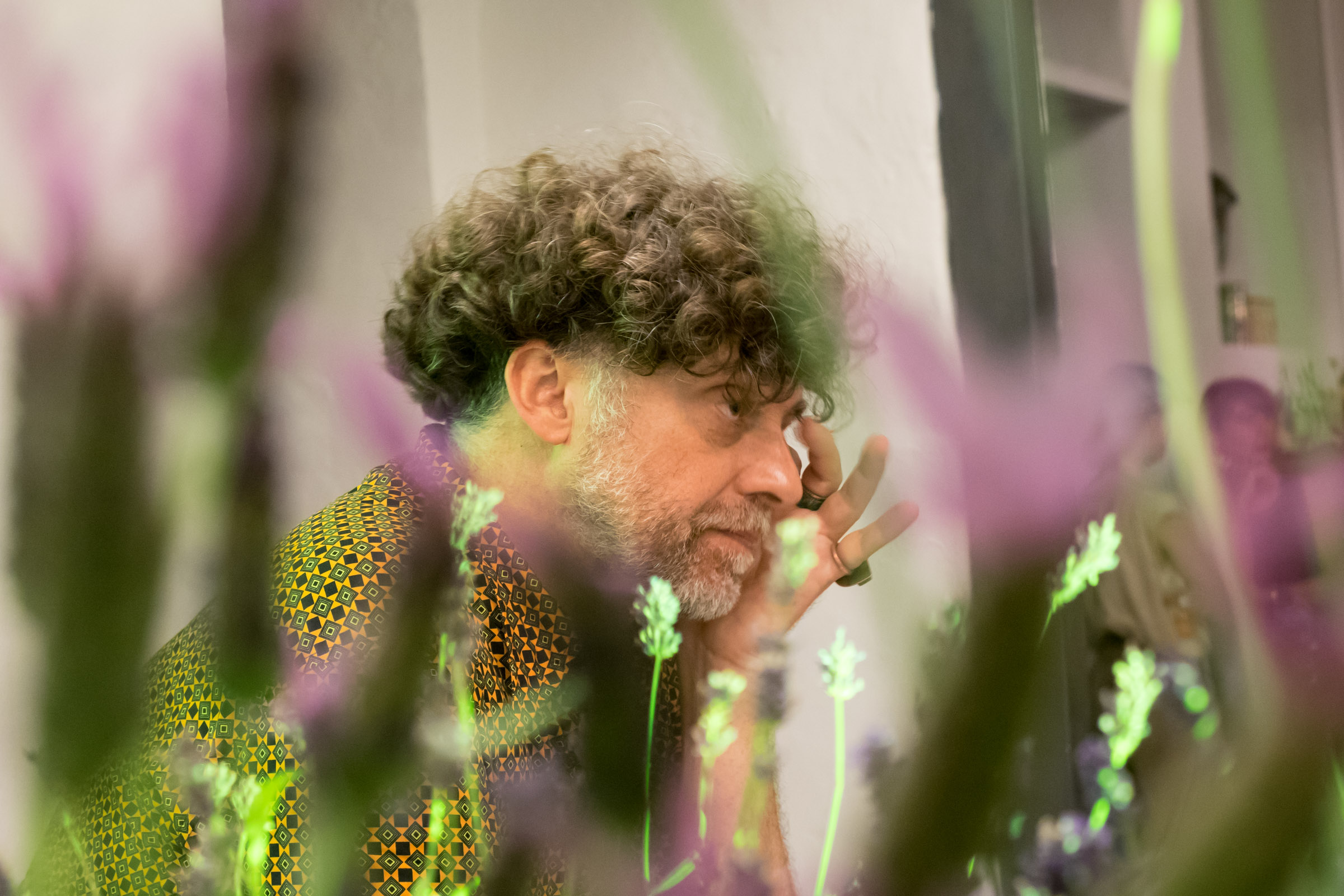 Philippe, artista giardiniere di Pret à Parler, tra le sue piante di lavanda