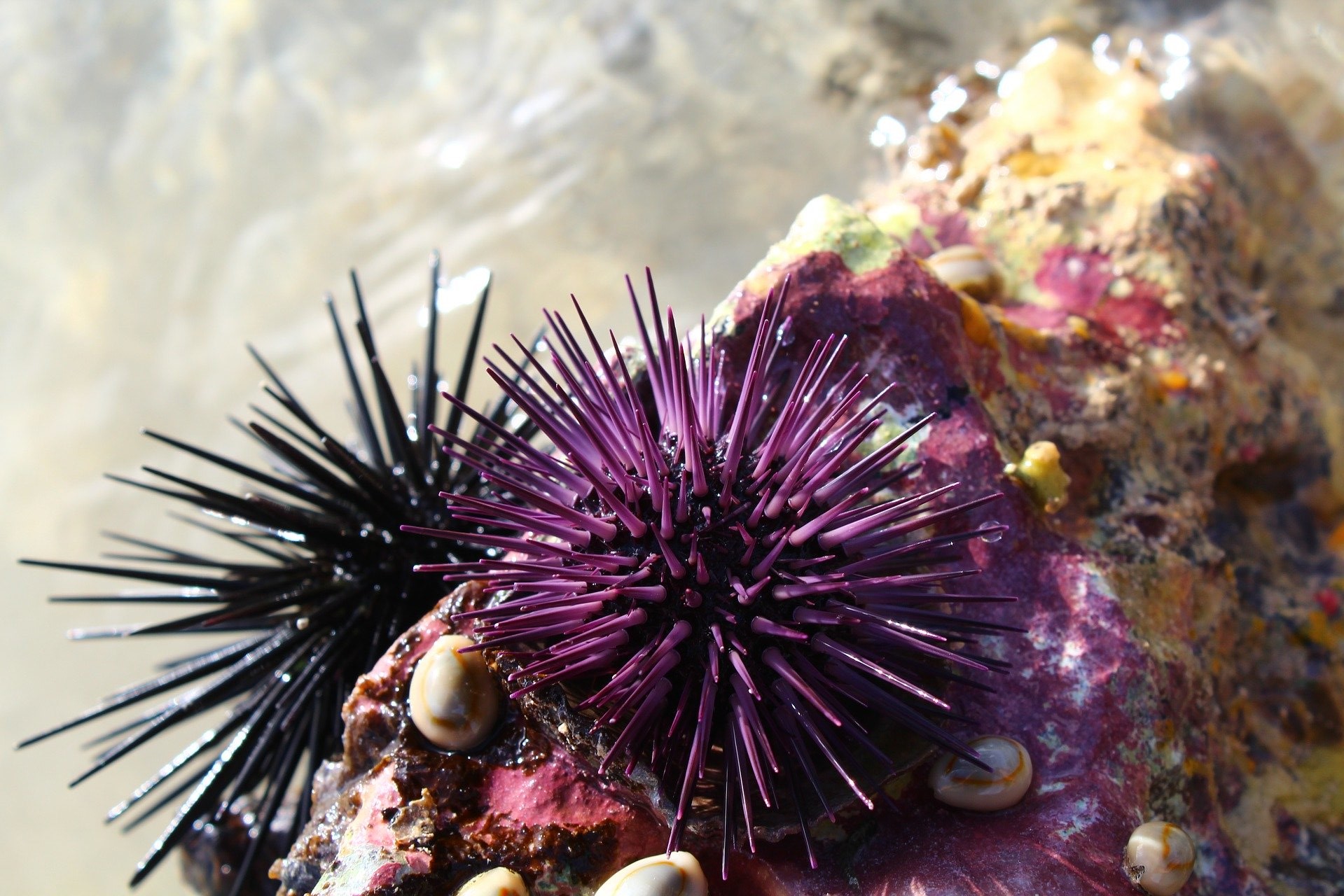 Ricci di mare aggrappati a uno scoglio