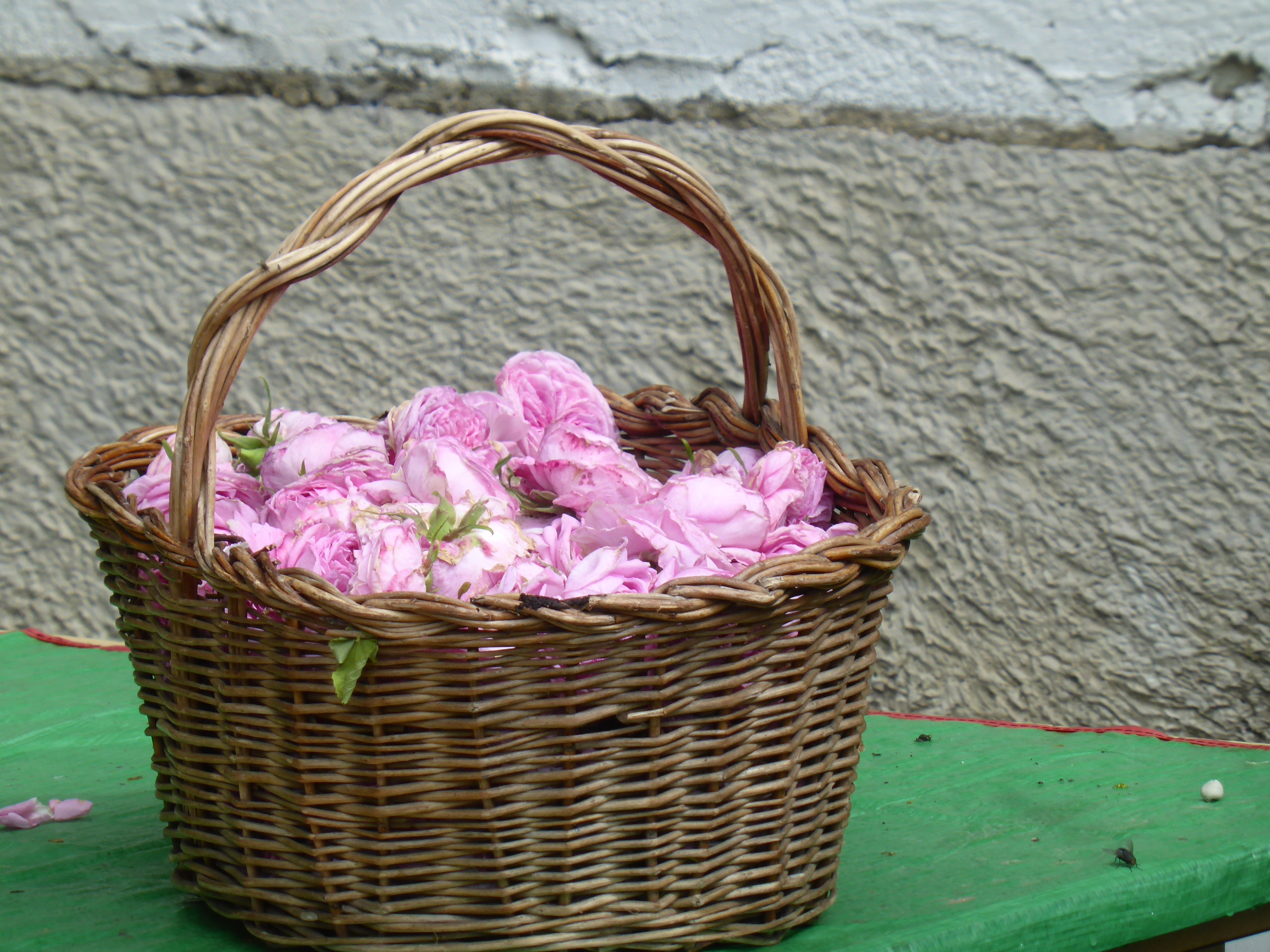 Un cesto di rose pronte per la distillazione